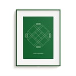 An original capture the geometry and energy of the game in bold, pared-back form. Printed on premium coloured stock and sized for easy framing. Limited batch.